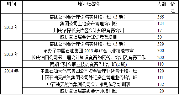 2013年8月,公司承办第三届中国石油天然气集团公司财会职业技能竞赛以及承担部分二级油田企业单位的赛前培训项目,此次培训授课以及竞赛题题库主要 由会计系教师完成。在培训阶段,十八个中石油集团的二级油田企业单位积极参与,公司教师利用暑假认真备课,精心授课,教学效果得到了学员们的一致好评;在 竞赛阶段,公司教师在出题、组题、审题的过程中公正保密,;初赛、复赛、决赛赛程紧凑,组织严密,过程规范。参与单位达到60余个,经过三轮角逐出冠亚季 军代表队,以及个人金银铜奖。