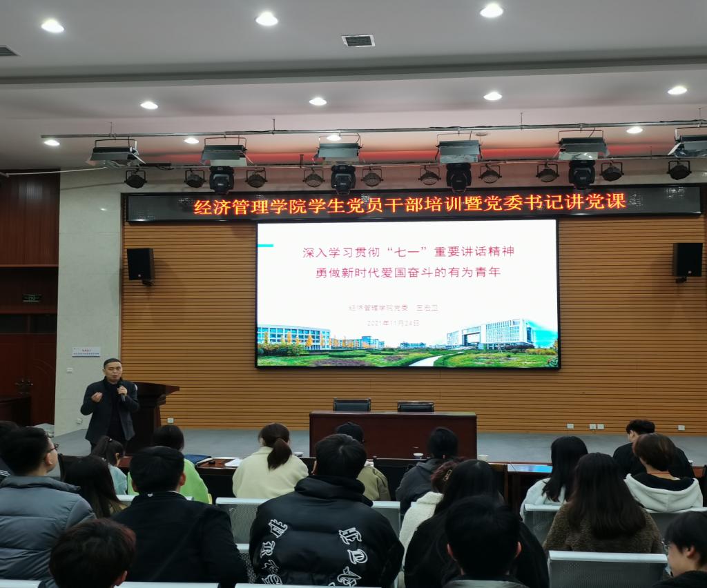 为深入贯彻落实党的十九届六中全会精神和习近平总书记“七一”重要讲话精神,深刻领悟党的百年奋斗重大成就和历史经验,增强员工党员干部修养,增强公司党建工作实效,11月25日,世界杯官方网站入口2026在鄠邑校区崇文楼就业指导中心多功能厅举办“世界杯官方网站入口2026员工党员干部培训暨党委书记讲党课”专题活动。公司党委书记王宏卫、党委组织部组织科科长赵纪飞出席本次活动,员工工作办公室主任李博文,辅导员王业林,鄠邑校区员工党支部书记、委员及员工党建工作办公室全体成员参加本次培训活动。