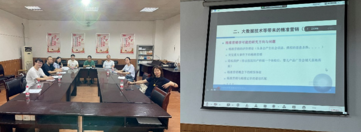 王君萍经理指出,利用假期坚持参加市场营销领域的学术年会和教学年会是市场营销团队培训的重要途径,特别是今年公司市场营销专业申报省级一流本科专业建设点,更需要从外部资源中汲取新理念为申报工作提供新想法和新思路。参会教师也表示,营销环境的复杂性与多变性要求市场营销专业教师定期更新自身的知识储备和专业技能。最后,王君萍经理与参会教师一起结合年会精神,围绕一流专业申请工作中的工作进展、存在问题和下一步努力方向进行集中讨论。