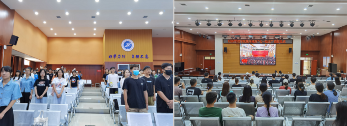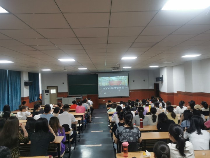 与会师生集中观看了庆祝中国共产党成立100周年“七一勋章”颁授仪式现场直播。中共中央总书记、国家主席、中央军委主席习近平向“七一勋章”获得者颁授勋章并发表重要讲话。习近平强调,一百年来,一代又一代中国共产党人,为赢得民族独立和人民解放、实现国家富强和人民幸福,前仆后继、浴血奋战,艰苦奋斗、无私奉献,谱写了气吞山河的英雄壮歌。在庆祝中国共产党成立一百周年之际,我们在这里隆重举行仪式,将党内最高荣誉授予为党和人民作出杰出贡献的共产党员。习近平指出,“七一勋章”获得者都来自人民、植根人民,是立足本职、默默奉献的平凡英雄。他们的事迹可学可做,他们的精神可追可及。他们用行动证明,只要坚定理想信念、坚定奋斗意志、坚定恒心韧劲,平常时候看得出来、关键时刻站得出来、危难关头豁得出来,每名党员都能够在民族复兴的伟业中为党和人民建功立业。