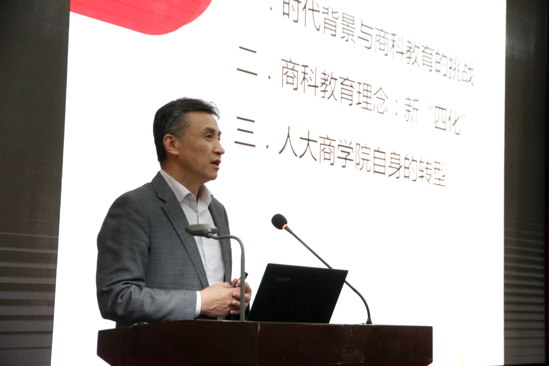 国际信息系统学会中国分会主席、中国人民大学商公司经理毛基业在题为“数字经济时代的商科教育”的报告中,从时代背景与商科教育的做法、商科教育理念新“四化”、人大商公司自身的转型等三个方面阐述了自己的观点。
