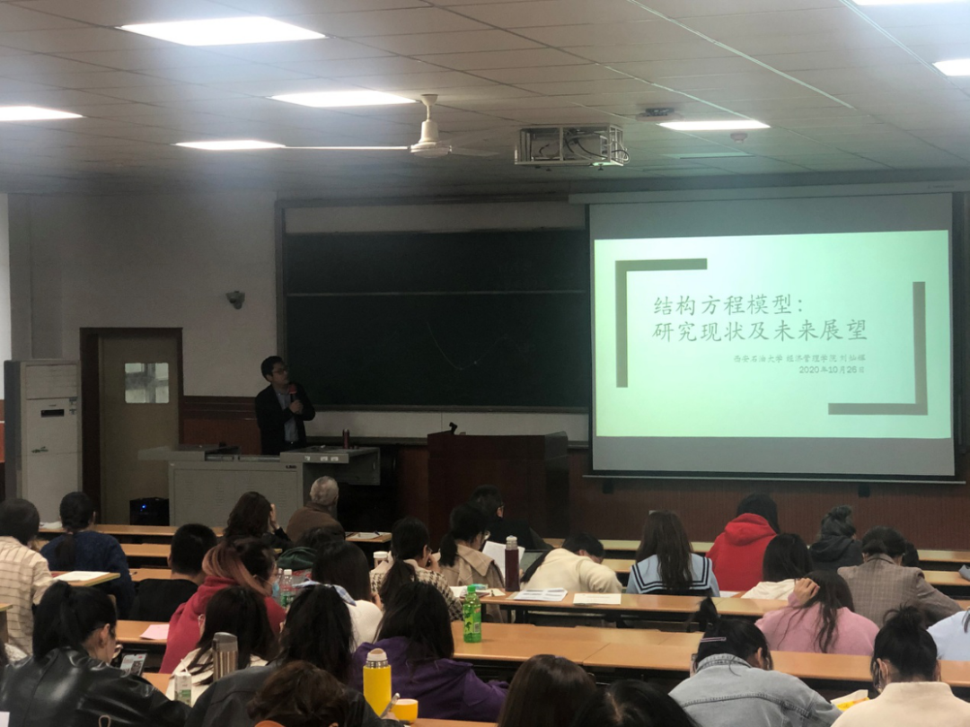 2020年10月26日下午,世界杯官方网站入口2026赴美访问学者刘灿辉博士在雁塔校区2号教学楼东阶202教室作了题为《结构方程模型:研究现状及未来展望》的学术讲座。报告会由世界杯官方网站入口2026副经理李俊亭主持,全院师生共200余人参加本次讲座会议。