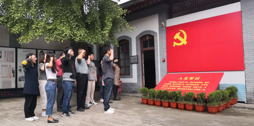 在纪念馆内,党员同志在解说员的引导下,仔细浏览历史资料,认真聆听革命故事,通过一幅幅照片、一件件实物、一段段故事,动情地回顾了周恩来、朱德、刘少奇、彭德怀、叶剑英、邓小平等老一辈共产党人在八路军西安办事处开展统一战线、输送进步青年去延安、为陕甘宁边区和前方转送战争物资的光荣历史。在参观过程中,全体党员面对鲜红的党旗,面向革命先烈和老一辈共产党人艰苦奋斗的地方,庄严地重温了入党誓词。