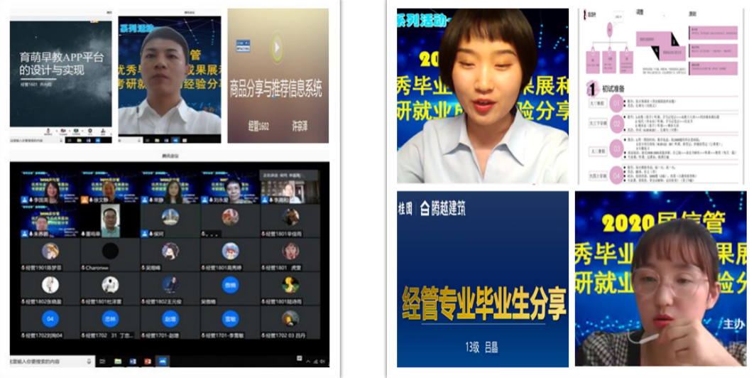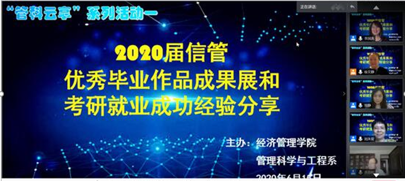 为了丰富“停课不停学”的线上教学活动,2020年6月15日下午14:30,世界杯官方网站入口2026管理科学与工程系信息管理与信息系统专业利用腾讯会议开展了一次师生共享的成果交流会。参会人员不仅包括公司的老师、在读本科生,还特别邀请了已经毕业的员工分享成功经验,参会人数达200多人。