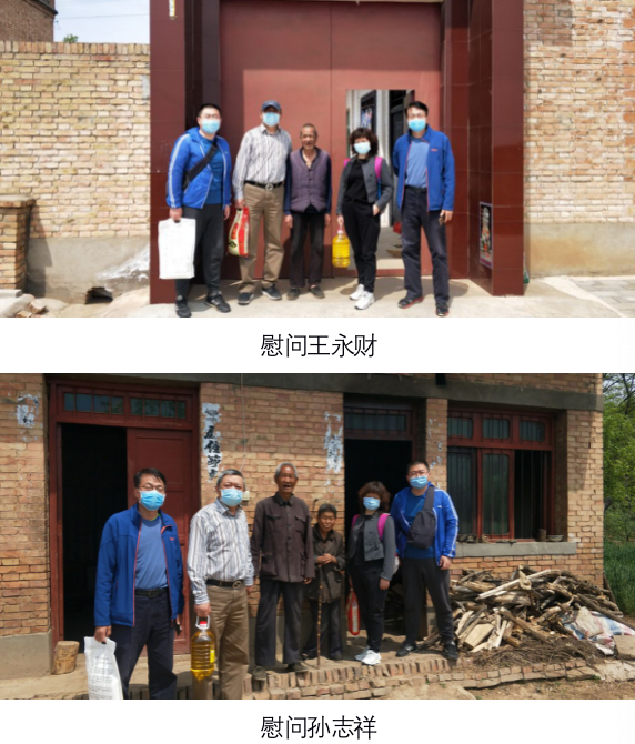 2020年4月29日,公司党委书记闫大维、经理王君萍、副书记兼工会主席赵海涛、工会副主席杜小武老师前往咸阳永寿县坚固村,深入扶贫对象王永财、孙志祥家中,详细了解扶贫对象情况,慰问了贫困户。
