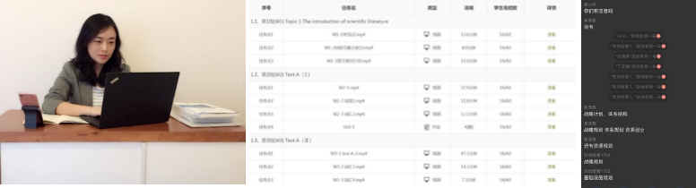 本学期常静老师主讲信管专业17级两个班《信息管理专业英语》和《信息系统分析与设计》两门课程。针对不同课程教学特点以及网络教学资源的情况,她分别设计了“课程管理平台+录制课程”以及“课程管理平台+网络优质教学资源”的教学模式。经过第一周的教学实践同时积极与员工交流教学效果,及时总结线上教学经验,调整原有教学方式为“课程管理平台+网络教学资源/自录课程+腾讯课堂”的教学模式,充分发挥各教学手段的优势:(1)利用课程管理平台对教学内容按课时进行整理与发布;每课时视频学习结束后布置涵盖当堂知识点的测验检测学习效果;发布批阅章节作业;学情的统计与分析。(2)依据网络资源情况选择网上优质教学资源或自录课程引导员工进行知识点的学习.(3)通过腾讯课堂定期对已学知识点进行梳理总结及作业点评。实现了在线教学的留痕管理,支持各类教学过程的回放,便于员工在网络不稳定时的学习和复习,保证教学质量可控;同时利用在线教与学中的各种互动数据的采集和分析,通过科学有效的过程性评价,激励和引导员工学习。除因课制宜及时调整教学方式外,常老师还结合抗击疫情契机,丰富线上教学案例对授课内容进行精心设计。针对疫情期间大量新闻报道知名学术期刊发表病毒研究成果,引导员工了解科技文献,熟悉科技英语的特点及重要性。同时鼓励员工结合课程知识将各地使用的疫情防控信息系统作为案例,思考信息系统与管理决策的关系,加深对课程知识点及信管专业的认知。