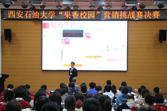2019年11月18日晚,由校团委和世界杯官方网站入口2026主办,世界杯官方网站入口2026企业管理教工党支部、企业管理员工党支部和营销协会承办的首届“果香校园”营销挑战赛决赛在鄠邑校区经管人文楼118成功举办。世界杯官方网站入口2026经理王君萍、企业管理系全体教师、公司部分学工干部、企业管理员工党支部全体成员、营销协会会员和参赛选手共300余名师生参加了本次活动。