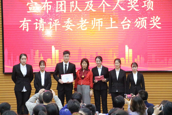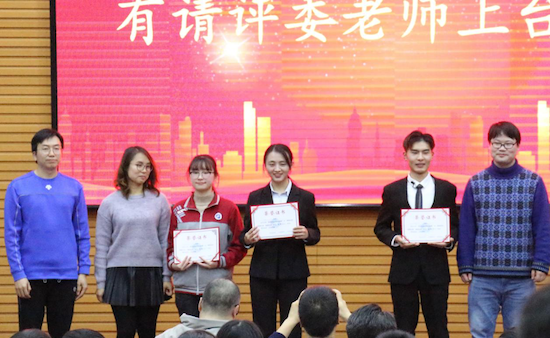 人文院设计系刘东林同学进行优秀团队代表讲话,对挑战赛经历做出了总结,并对到场评委老师及嘉宾表示感谢,后评委老师为其依次颁奖。