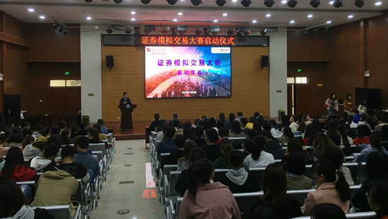 吴勋副经理在致辞中结合教育部召开的新时代全国高等公司本科教育工作会议的精神指出,全面提高高等教育质量,本科教育至关重要,本次大赛的启动就是要给公司老员工合理“增负”,这不仅有助于同学们做到知行合一,将理论知识转化为实践能力,也有助于公司的专业建设和学科发展。王天福副总经理在讲话中指出,本次大赛旨在为拟参与证券投资的同学搭建一个模拟证券交易的平台和环境,进行专业知识教育和模拟交易,帮助同学们尽快熟悉证券交易规则,为后续的学习和工作打下良好基础。赵海涛副书记宣布证券模拟交易大赛正式启动。