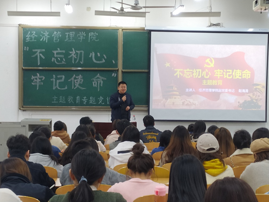 首先,由赵海涛副书记讲授党课,题目为“不忘初心、牢记使命”主题教育,党课的讲授从以下四个方面展开:主题教育简介、主题教育的公司要求、主题教育的公司方案和主题教育公司进行时。赵海涛副书记从主题教育的总要求、根本任务和具体目标等方面向员工党员们介绍了“不忘初心、牢记使命”主题教育内容,并且介绍了公司根据中央、省委、省委教育工委及公司党委的要求制定的主教育学习计划,希望全体员工党员要坚持集中学习与个人学习相结合,围绕主题主线,聚焦学习内容,确保理论学习有收获,不断增强党性、提高素质。