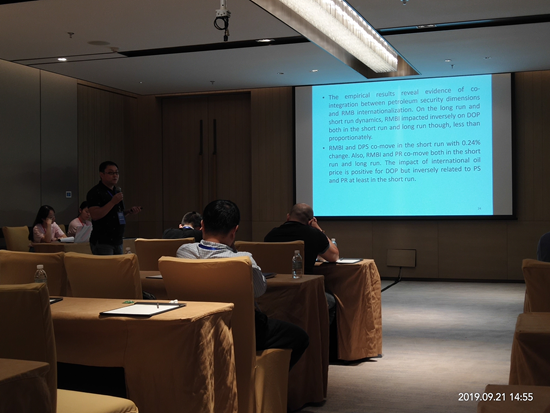 9月21日,陈丁博士在“能源供应与能源安全”分论坛宣读题为“Does Renminbi Internationalization Matter for Petroleum Security in China?-Evidence from A Disaggregate Analysis”的学术论文,并与多位专家进行现场讨论。