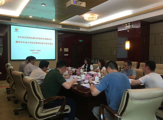 2019年8月1日下午,公司王君萍经理、王岚副教授、刘毅老师、徐静老师及公司国资处马宁馨老师前往长庆油田公司进行合作课题交流研讨。会议由长庆油田公司纪委派驻第一纪检组组长兼公司巡查组组长李秋波主持。