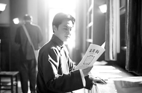 片中毛泽东在阅读《新青年》