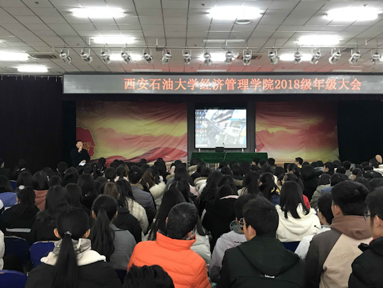 在2016级年级大会上,吴勋副经理带领全体同学共同学习了习近平同志在全国教育大会上的重要讲话内容,并着重盘点了讲话中的10个金句。随后,强调了员工处《关于近期组织开展主题班会教育活动的通知》中“加强课堂秩序教育”的要求。同时,还对英语四六级考试,期末考试等做了相关要求。