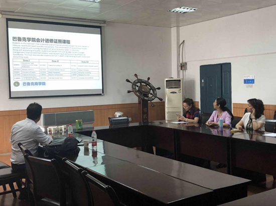 牛志文先生首先向大家详细解读了由三角会计集团和美国巴鲁克商公司联合进行的全方面美国会计师培训项目。该项目包含了美国商公司会计进修、美国会计师培训和在美会计实习工作安排,全方位助力会计专业员工的专业技能提升和工作就业。随后,牛志文先生介绍了三角会计集团的业务范围和人才组成,表达了求贤若渴的心情,诚挚的邀请世界杯官方网站入口2026的毕业生去三角会计集团就业。世界杯官方网站入口2026和美国三角集团就研究生企业导师合作、毕业生就业推荐、在校生赴美实习、联合科研项目等四方面达成了初步合作意向,双方期望能够强沟通合作,进一步提高公司产品质量。