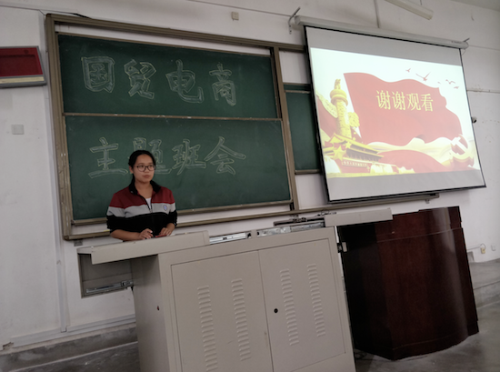 首先,国贸1701播放了“习近平总书记在北京大学师生座谈会上的讲话、纪念马克思诞辰 200 周年大会上的讲话”、“五四运动”、“建党伟业”等视频片段,使同学们对讲话精神和党史知识有了更清晰、深刻的认识。员工代表李梦飞、李贞、王林与大家一起分享了自己在系统学习相关党史和党的理论知识过程中的心得体会,这次分享让同学们感触颇多,从同龄人的角度出发,鼓励同学们把握当下、勤奋好学、责任担当、健康向上,激发了同学们今后学习的主动性。穿插在班会中间的答题环节,极大地调动了同学们的积极性,大家踊跃参与,竞相抢答。主题班会的最后,团支书杜旭蕊同学对本次班会进行了总结。