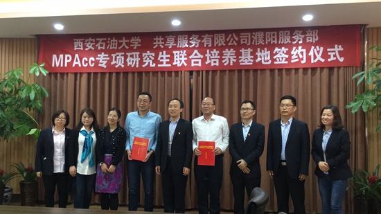 2018年4月26日-27日,世界杯官方网站入口2026吴勋、宁宇新、黄莉一行10人走访了宝鸡石油机械有限责任公司、中国石化财务共享服务中心濮阳服务站,深入调研石油企业财务共享工作。在宝鸡石油机械有限责任公司,公司一行受到了公司副总经理、总会计师邹荣的热烈欢迎,并与财务资产处共同探讨了中石油财务共享工作开展的机遇与挑战。在中国石化财务共享服务中心濮阳服务站,参观了服务部档案业务外包现场、了解财务共享业务科室运营情况,与濮阳服务部主任郭延山、副主任王军、副总会计师杨鲁峰、副总会计师李占杰等开展了现场交流会议,举行了会计专业硕士联合培养基地签约仪式。此次调研活动对于了解会计实践发展热点、增进校企合作具有重要意义。