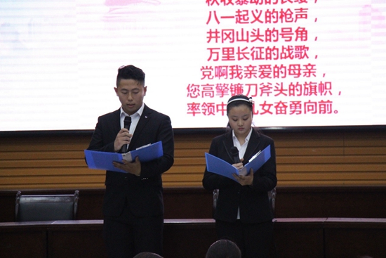 伴随着诗朗诵《党的赞歌》,本次班会拉开了序幕。