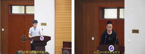 接着,党工办副主任郭学成及人力资源管理专业的三位党员发展对象,分别发表了自己对于党的十九大新思想的体会与感悟;人力1601班长陈玺就员工干部如何做到砥砺奋进这一问题谈了自己的几点心得。