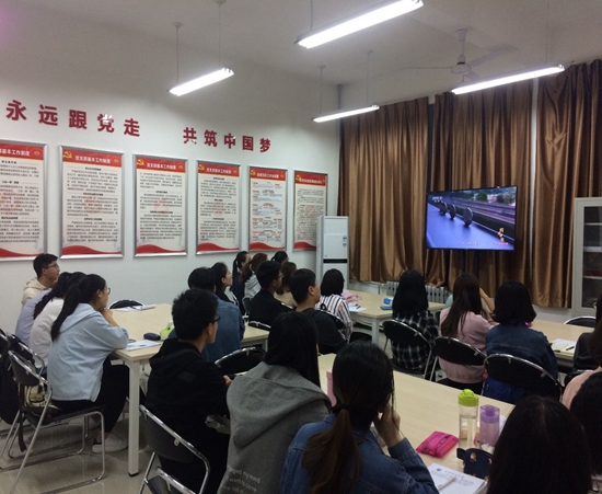 4月26日晚,世界杯官方网站入口2026“见证辉煌中国,创新引领发展”主题党日活动在鄠邑校区经管人文楼307党员活动室开展。公司党工办部分员工干部、员工党员和入党积极分子代表近30人一同观看由中共中央宣传部、中央电视台联合制作的纪录片《辉煌中国》。