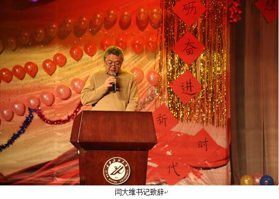 晚会开始前,公司党委书记闫大维代表公司致新年贺词,回顾总结一年来公司取得的成绩,并向全院师生送上了新年的祝福与希望。