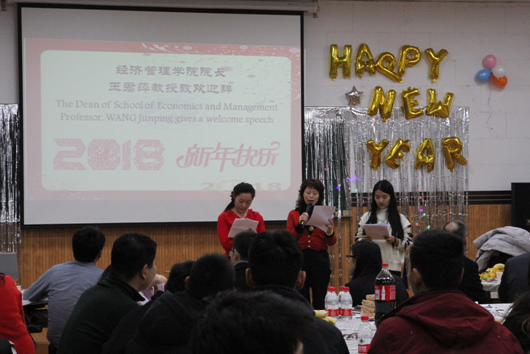 The dean of the School of Economics and Management WANG Junping expressed her welcome to international students to get together and communicate in the party. The dean Wang indicated that the new year party acted as a platform for everyone to show themselves, make friends and express feelings. She also emphasized that the international students are definitely important components in the School of Economics and Management. The management department of the faculty has been committed to improve the service quality to make international students feel at home and help them to integrate into the group.