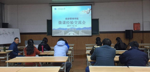 上届微课竞赛中获奖的优秀教师徐文静、李春霄、陈丁分别为大家分享经验。三位教团队料准备充分,将自己的经验、教训倾囊相授。三位教师从微课的特点、选题、PPT设计、录制细节、后期制作要点等方面做了详细讲解,强调了微课“短、小、新、精”的特点,强调了微课“one to one”的性质,强调了微课是一个“自编、自导、自演”的过程。三位老师的分享对本届报名参赛教师来说无疑是一场及时雨,为大家下一步的工作提供了非常有价值的信息。