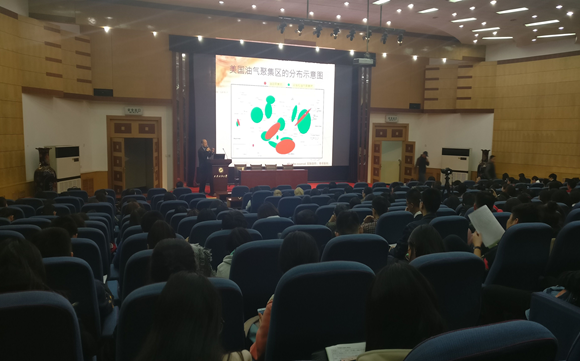 同日下午,刘牧老师在学术会议中心报告厅进行了题为《美国石油工业的起源》的学术讲座。讲座由世界杯官方网站入口2026张帆副经理主持,全校200余位师生到场聆听。刘牧老师通过石油工业关键人物的传奇故事,将美国石油工业由宾夕法尼亚到奥克拉荷马,再到德克萨斯的发展历程娓娓道来,勾勒出美国石油工业曲折的发展脉络。刘牧老师认真严谨的治学态度、细致生动的讲解得到与会师生的热烈掌声。