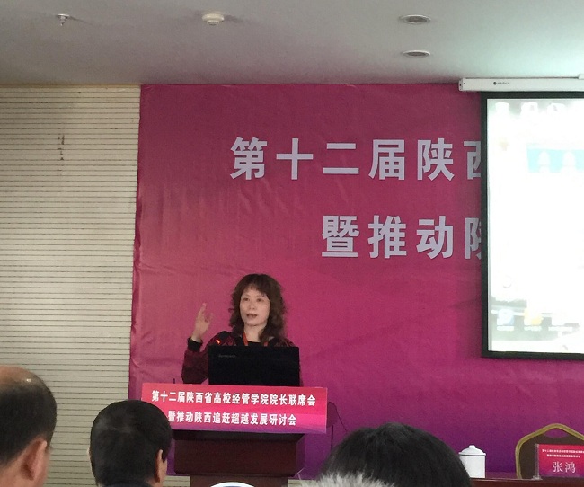 上午会议由三个主题报告组成,分别为:推动陕西省追赶超越发展、本科教学工作审核评估与人才培养模式、发挥社科优势服务地方经济。在本科教学工作审核评估与人才培养模式的主题报告中,王君萍副经理做了《关于经管专业本科评估的几个问题》的主题发言。