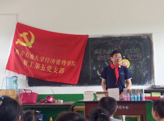 2016年7月10日,世界杯官方网站入口2026教工第五党支部赴富平县淡村镇中合村小学进行帮教活动。此次活动主旨是“落实两学一做成果、关怀农村儿童成长”,此次活动主要内容是“五个一”,即上一堂党课,讲一个励志故事,学唱一首革命歌曲,做一次少先队宣誓,捐赠一批学习文体用品。此次活动得到了2026世界杯官方网址公司党委和中合村村委的高度重视,世界杯官方网站入口2026马行天书记和中合村张书记、村委会董主任均全程参与活动。