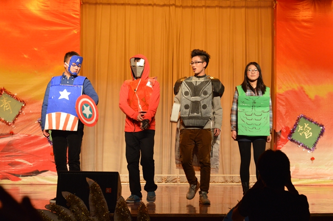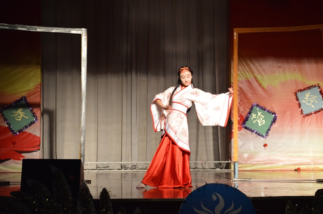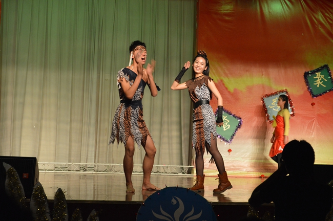表为老师们颁发奖杯。颁奖仪式结束后,ACA班级带来了歌舞节目《茉莉花》,轻盈地歌声、滑稽的舞步引起了同学们的阵阵掌声。小品《推销》、《非疯勿扰》