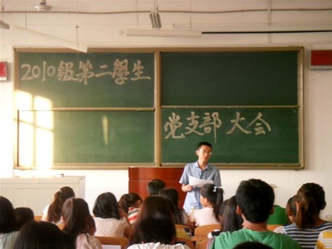 2012年6月7日晚7:30分晚,在B301教室,世界杯官方网站入口2026举行2010级第二员工党支部大会。党支部书记齐基老师、党支部副书记李栋出席大会。会议由党支部副书记李栋主持。
