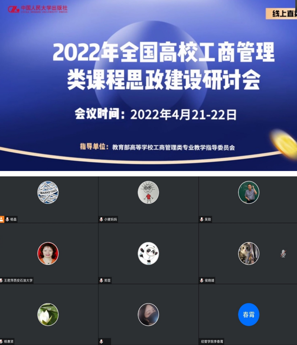 4月21日,公司党委书记王宏卫、经理王君萍、副经理吴勋、各学科负责人、各专业负责人、各系主任及部分教师代表以线上的方式在小鹅通平台参加2022年全国高校工商管理类课程思政建设研讨会。此次会议指导单位为教育部高等公司工商管理类专业教学指导委员会,由中国人民大学出版社负责承办,旨在深入实施《高等公司课程思政建设指导纲要》,推进高校工商管理类各专业课程思政建设,探讨专业类课程思政教育共性。