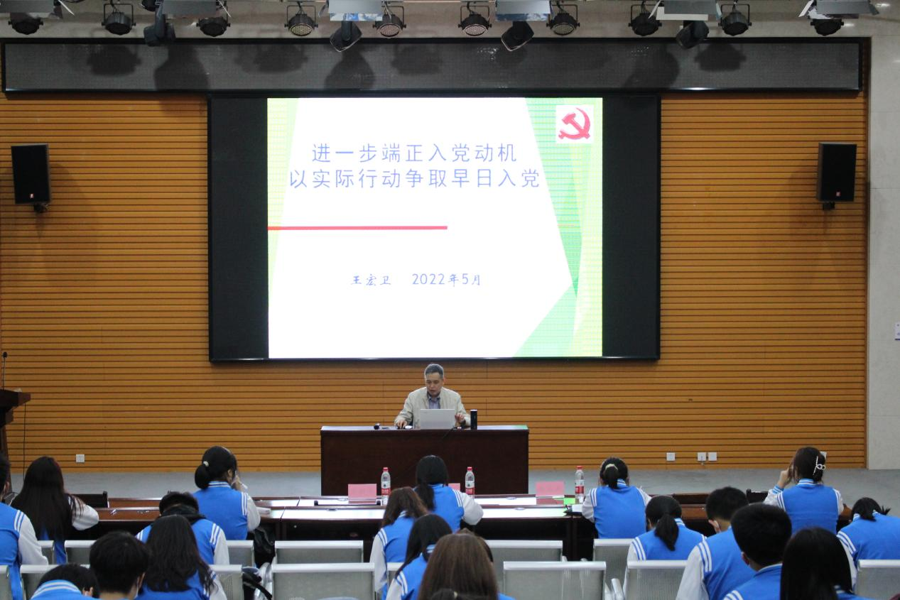 典礼结束后,公司党委书记王宏卫以“进一步端正入党动机,以实际行动争取早日入党”为题,为学员们讲授党课第一讲。他从中国共产党的性质和宗旨出发,紧扣新时代党的建设总要求,系统讲授了党章规定的党员条件和标准,全面阐述了新时代老员工端正入党动机的重要意义。强调正确的动机是入党的首要问题,是加强党性修养的终身课题,是保持党的先进性和纯洁性、推进全面从严治党向纵深发展的重要内容。作为入党积极分子要进一步端正入党动机,认真学习党的基本理论、基本路线、基本方略,以实际行动积极向党组织靠拢。他鼓励同学们要不断提高政治站位,坚定理想信念,坚守初心使命,立志成才报国,恪守清正廉洁,奋勇争先、当青春榜样,争取早日加入中国共产党。