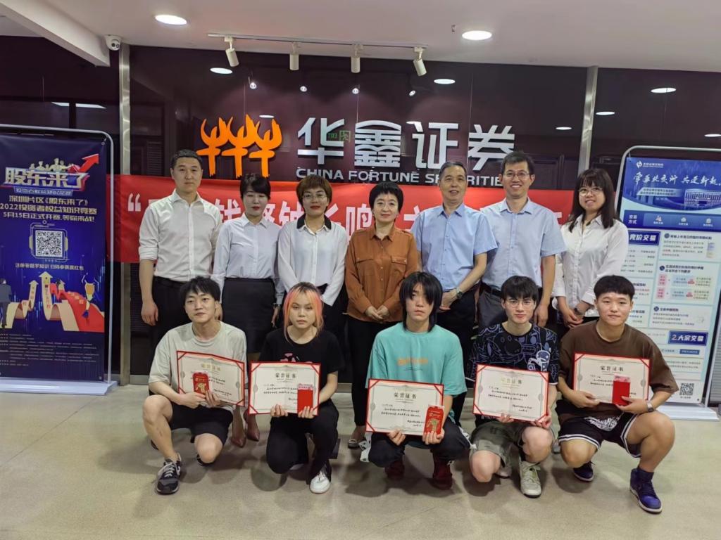 6月2日,世界杯官方网站入口2026第二届证券模拟交易大赛颁奖典礼在华鑫证券西安南二环营业部举行。公司党委书记王宏卫、经济学系系主任李春霄,华鑫证券西安南二环营业部总经理廖声隆、合规风控经理高军、财富总监刘智慧、业务拓展部经理蒋雯丽以及比赛获奖的6名同学出席颁奖典礼。