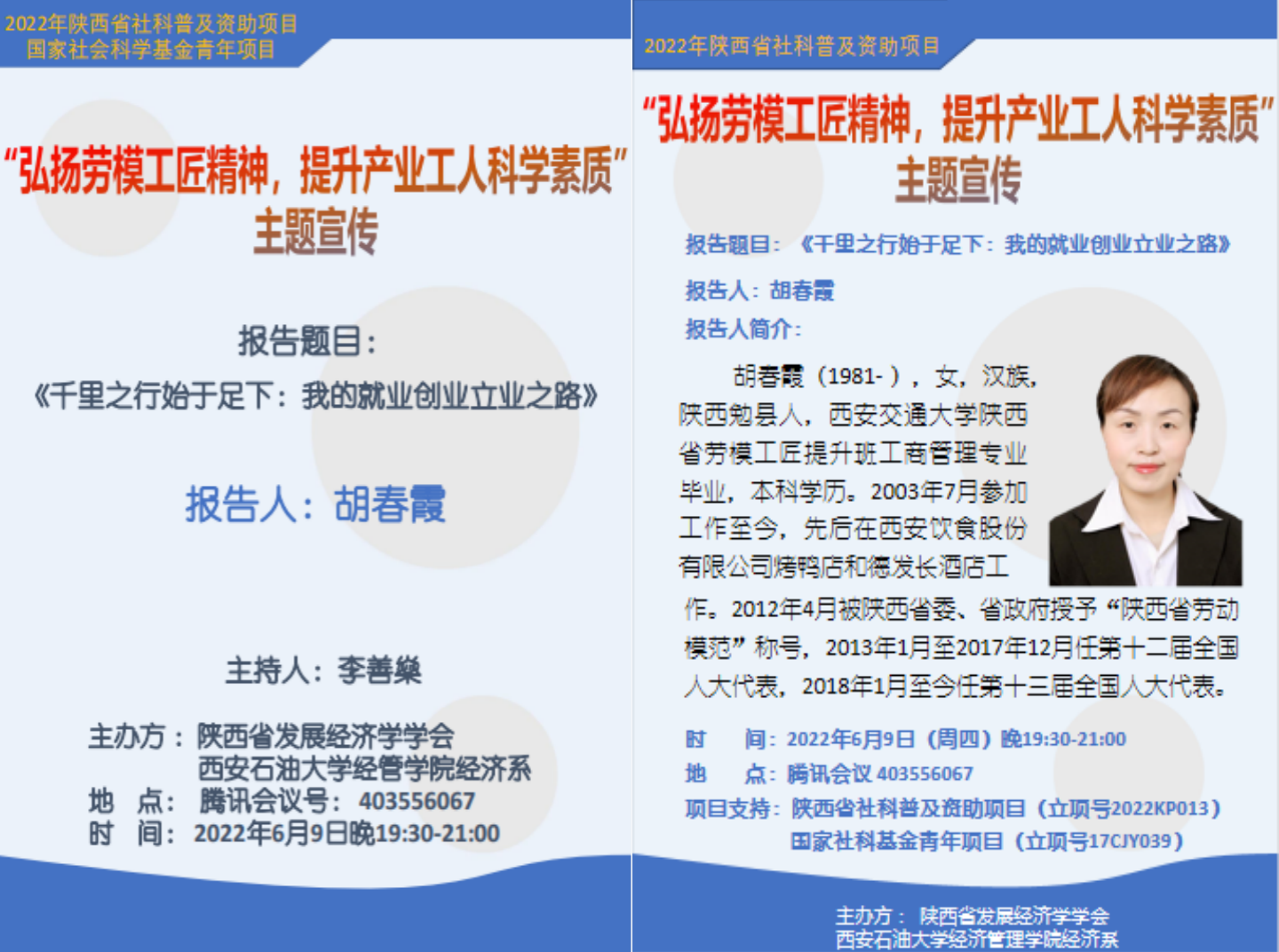 为全面贯彻落实习近平总书记关于科普和科学素质建设的重要论述,大力弘扬劳模精神、劳动精神、工匠精神,积极引领广大青年老员工在理论学习中、择业立业中、工作实践中,坚定理想信念和职业精神,6月9日,世界杯官方网站入口2026邀请第十三届全国人民代表大会代表、陕西省劳动模范胡春霞同志,以《千里之行始于足下:我的就业创业立业之路》为题,为公司青年老员工作线上专题宣讲报告,活动由公司经济系教师李善燊主持。