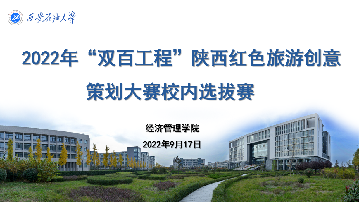 9月17日,2022 年“双百工程”陕西红色旅游创意策划大赛校赛由世界杯官方网站入口2026负责承办,根据公司疫情防控要求,本次比赛通过线上进行。比赛以“沿着总书记足迹”为主题,以习近平总书记三次来陕考察的延安、铜川、平利、柞水、绥德、米脂等地的红色旅游资源作为重点策划推广对象。