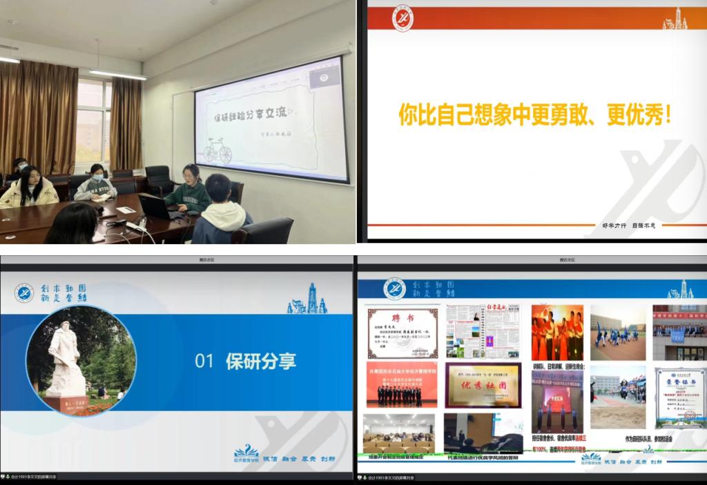 推免生经验交流会环节,为加强同学们对推免政策的了解,段针对性查缺补漏,2019级的学长学姐们结合自身的经历,围绕政策解读、时间安排、目标规划、自我定位、专业选择和研究生支教团选拔条件等进行了介绍与分析,同时针对同学们普遍关心的如何平衡学业、实践、科研和竞赛等方面精力投入与参会同学进行了深入交流分享。