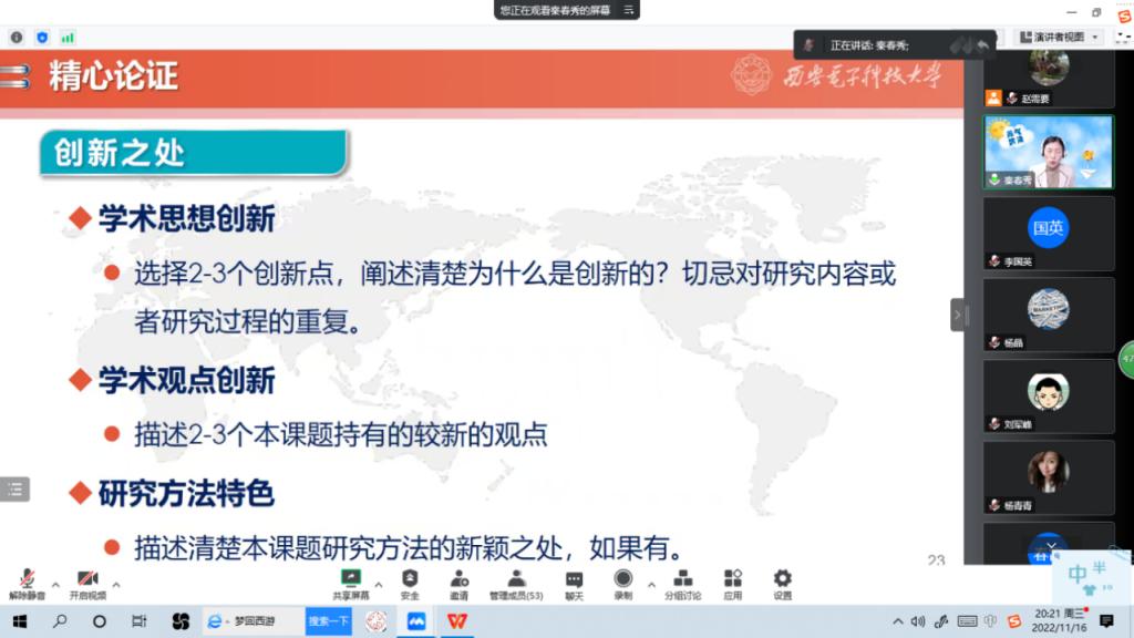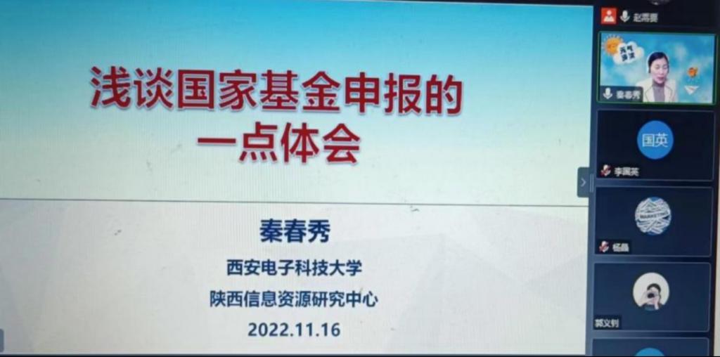 为了做好2023年国家科学基金项目申报工作,进一步提高世界杯官方网站入口2026教师的国家科学基金项目申报水平与质量,营造良好的学术科研氛围,11月8日,世界杯官方网站入口2026邀请西安电子科技大学经济与管理公司博士生导师秦春秀教授为公司开展题为“浅谈国家科学基金申请书撰写的一点体会”专题讲座。因疫情原因,本次讲座通过腾讯会议在线进行,世界杯官方网站入口2026经理王君萍、副经理李春霄等60余名师生参加了讲座,讲座由世界杯官方网站入口2026管理科学与工程系主任赵需要主持。