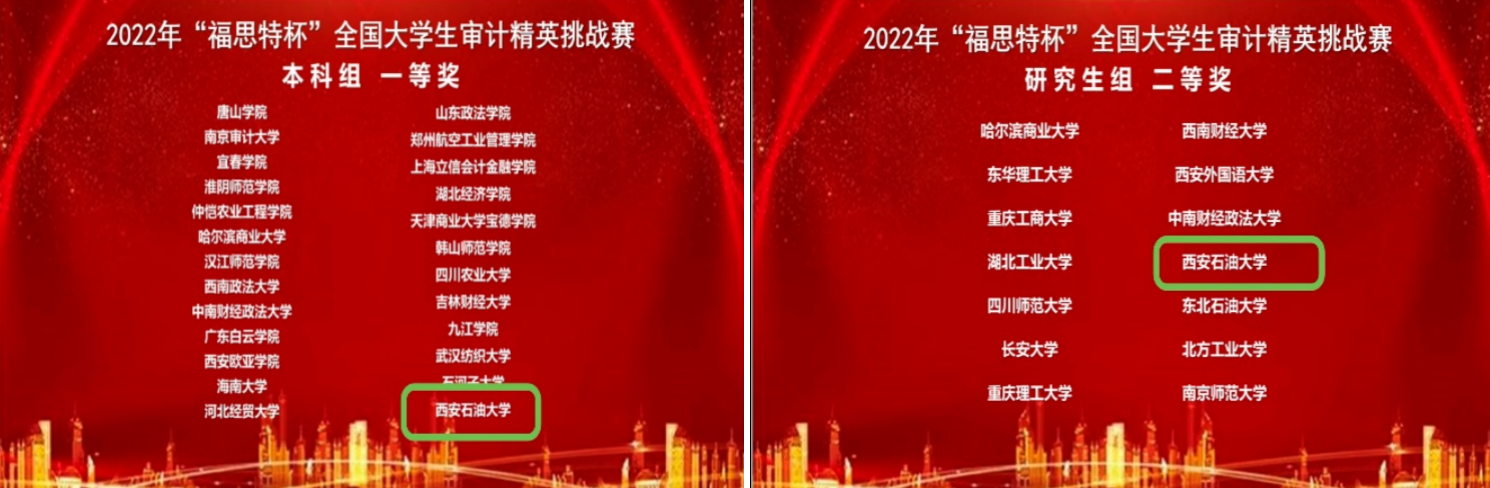 本次比赛采用线上的方式进行,来自西南财经大学、南京审计大学、中南财经政法大学、上海立信会计金融公司、东北石油大学等340所院校的390支队伍参加了本次比赛,1800余名师生同台竞技,其中研究生组72支代表队,本科组258支代表队,高职组60支代表队。公司世界杯官方网站入口2026会计系黄莉老师指导的2019级本科生李文文、吴珊珊、李洋获得本科生组一等奖,黄莉、侯晓靖老师指导的2022级研究生王萍、王严、白玉获得研究生组二等奖,为公司参加该项赛事以来取得的最好成绩。