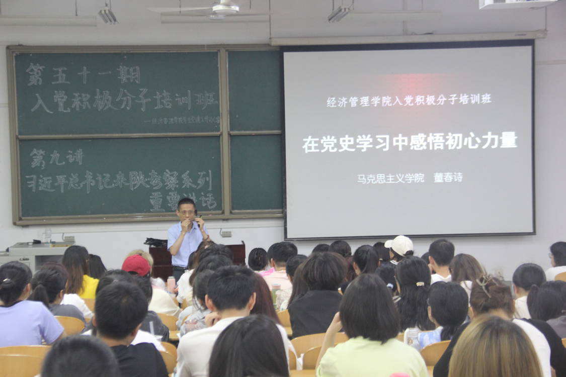 为进一步提高入党积极分子的政治觉悟,树立正确的入党动机,5月17日,世界杯官方网站入口2026第五十一期入党积极分子培训班第九讲在博思楼114教室顺利举行。本次党课由马克思主义公司党委副书记、副经理董春诗主讲,第五十一期入党积极分子全体同学参加。