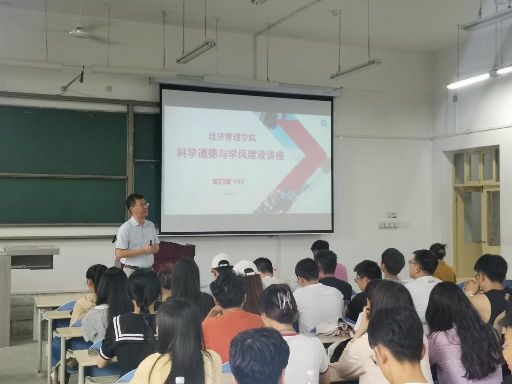 报告从“科学道德内涵、科研和学术活动中的十大不端行为以及危害、研究生应自觉准守的学术规范、研究生必须具备的十大精神与学养”四个方面展开。李春霄指出,研究生作为国家培养的高层次人才,一方面必须忠于学术研究的客观求知精神,另一方面也必须坚守研究的道德准则,不断自省检讨,互相策励。科学道德与学术诚信的树立,事关高校文化传承创新,事关自身学术水平的进步,事关学术的正常交流。他强调,作为研究生,我们应具备淡泊名利、潜心研究的奉献精神,胸怀祖国、服务人民的爱国精神,追求真理、严谨治学的求实精神,机智攻关、团结协作的协同精神。同时,通过一系列真实的案例进行生动的讲解,展示说明了学术不端行为对于科研工作者、学术环境、高校声誉和国家形象带来的不良影响。他谈到,强烈的求真进取精神、理性的怀疑精神、踏实的文献阅读、严谨学术作风是做好科研的必要条件。他表示,要摒弃结论预测思想,只要研究过程中数据真实、模型合理、方法正确,即使结果不显著,论文研究也是有意义的。他希望大家:一是坚守学术道德,摒弃浮躁思想;二是培养打破砂锅问到底的精神,提升自我人文素养;三是联系我国实际,将论文写在祖国大地上。