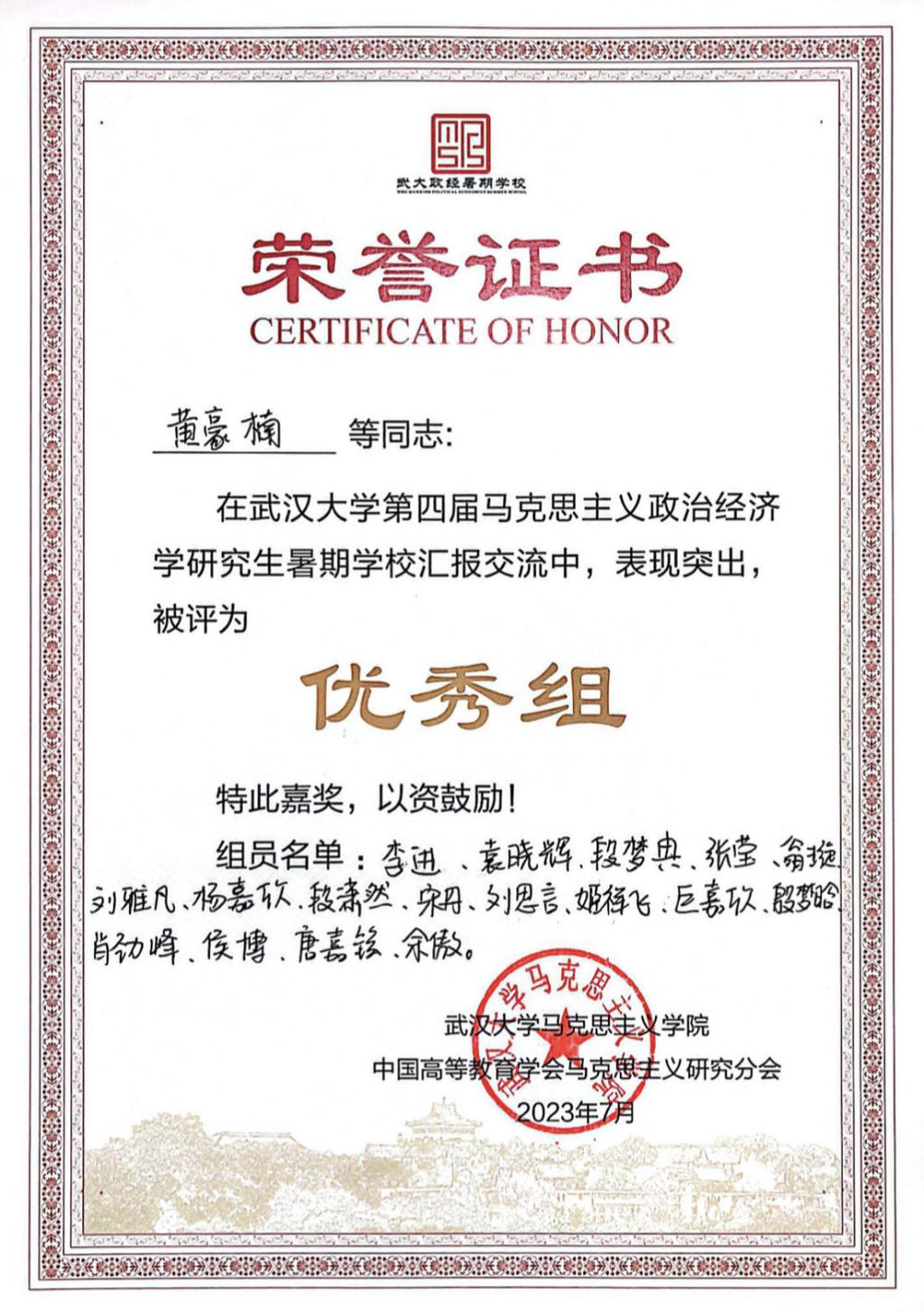 世界杯官方网站入口2026研究生代表参加武汉大学第四届马克思主义政治经济学暑期公司