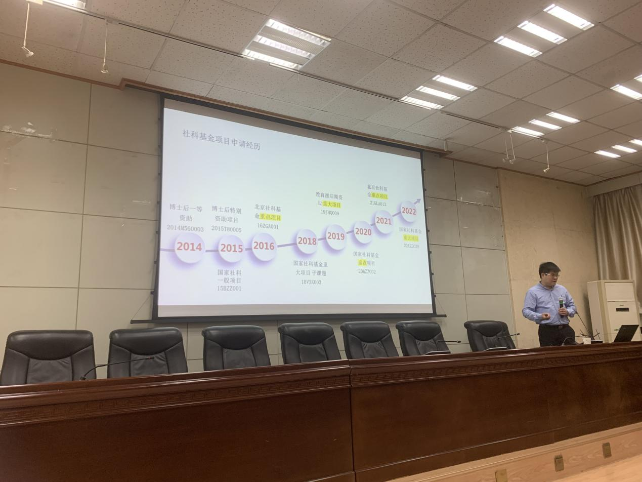报告中,臧雷振教授结合自己申请国家社科基金项目的心得与感悟,对国家社科基金的立项状况、主题分布、发展态势进行分析,从选题依据、思路方法、创新之处、学术价值、重点难点、研究基础、参考文献等逐条进行了经验介绍和心得分享。他认为,国家社科基金申报应聚焦课题指南,坚持以重大理论和现实问题为主攻方向,推动学科体系、学术体系、话语体系建设。报告后,臧雷振教授与老师们围绕申报中的具体问题进行了互动交流,并对部分老师的申报书从选题精细度、研究团队组建和研究框架布局等方面进行了详细的分析与指导。