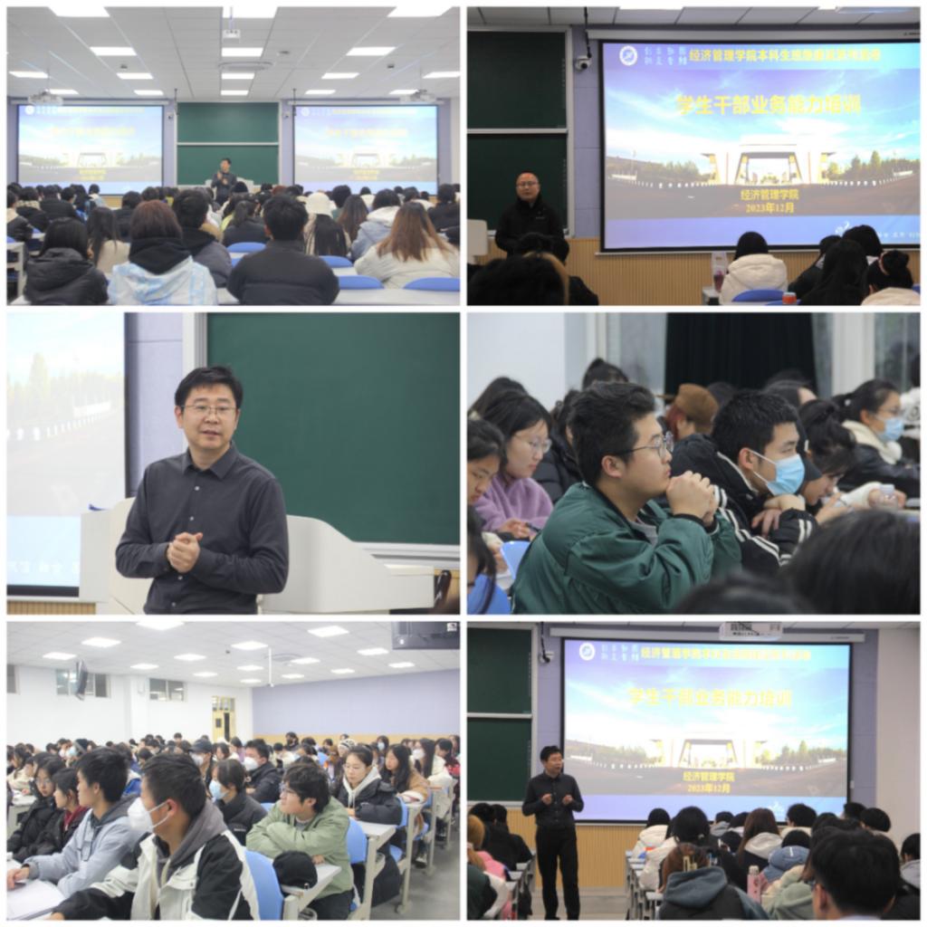 为进一步增强本科生班级建设工作成效,根据世界杯官方网站入口20262023—2024学年第一学期本科生班级建设系列活动安排,12月14日,世界杯官方网站入口2026在鄠邑校区博览楼108智慧大讲堂开展员工干部业务能力培训。本次培训由员工工作部(处)部(处)长、就业指导中心主任王亮主讲,公司党委副书记王刚主持培训会,各年级、各班级“两委”主要员工干部,员工党建工作办公室副部长级以上干部,团学副部长级以上干部参加。
