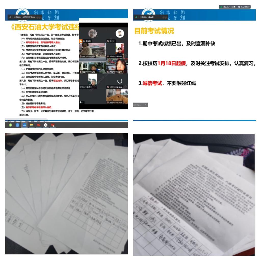 为了进一步加强和促进新时代高校思想政治工作,弘扬新时代学风建设精神,提高同学们的诚信考试意识,切实加强学风建设,严肃考风考纪,营造风清气正的考试环境。12月11—15日,世界杯官方网站入口2026开展了“筑牢诚信基石,营造良好考风”考试诚信教育主题活动。会议由各年级辅导员主持,各年级全体同学参加。