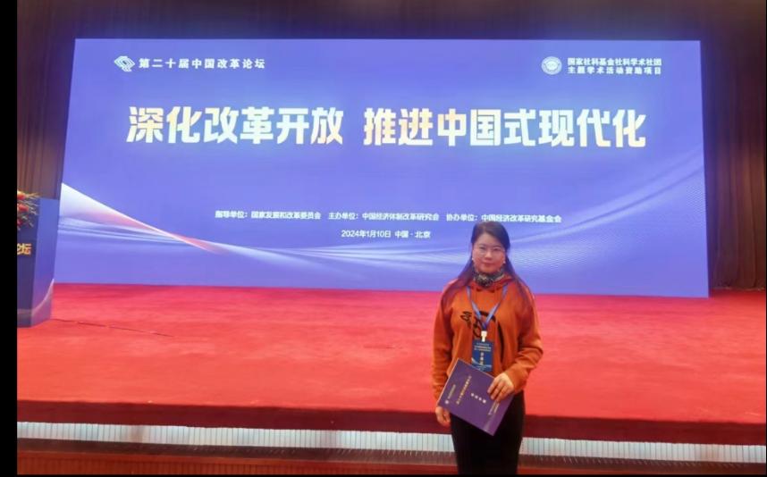 1月10日,由国家发展改革委指导、中国经济体制改革研究会主办的主题为“深化改革开放 推进中国式现代化”的第二十届中国改革论坛在北京举行,与会人员聚焦“深化改革开放,推进中国式现代化”展开深入探讨。公司世界杯官方网站入口2026教师黄莉副教授作为陕西省改革发展研究会的参会代表受邀参加了本次论坛。