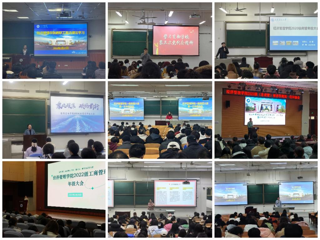 四是聚焦收心归位,凝聚共识向前进。为督促师生尽快收心调整状态,以成绩“归零”、思想“归心”、人员“归位”的状态,形成马不停蹄、提速争先的浓厚氛围,起好步、开好局。2月25日,公司召开教职工大会,进行政治理论学习,部署新学期各项工作,明确目标、找准定位、凝聚共识。2月27—28日,公司各年级召开年级大会,组织好新学期的“开学第一课”。2023级从课堂学习、早操晚自习出勤、活动参与度出发,要求员工夯实基础,做好个人大学规划。2022级围绕学业警示、学科竞赛、考风考纪等方面展开,鼓励同学们积极参与各项比赛,增强综合能力。2021级将考研、就业工作前置,积极动员员工提早进行规划。2020级就新学期毕业论文准备、考研复试、实习请假等方面进行讲解。团学、党工办召开全体员工干部大会,明确新学期各项任务,鼓舞信心,动员员工干部以新的精神状态投入到新一年的工作中。