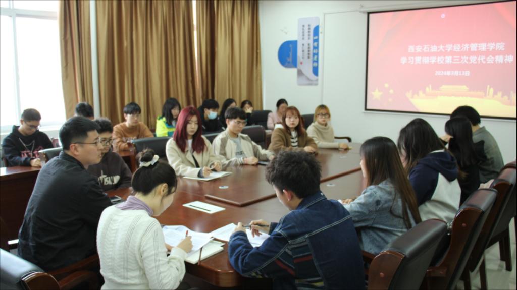 为进一步加强团学干部思想政治建设,提升理论水平,深入学习贯彻2024年全国两会精神与公司第三次党代会精神,世界杯官方网站入口2026于3月13日下午在鄠邑校区崇文楼305会议室举办团学干部学习交流分享会。世界杯官方网站入口2026团委书记李博文、团学指导老师任仰及主要团学工作干部参加本次活动。