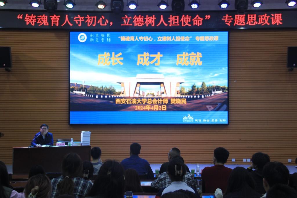 为深入学习贯彻习近平新时代中国特色社会主义思想和党的二十大精神,全面落实立德树人根本任务,4月2日,总会计师樊晓民以《成长、成才、成就》为题,为世界杯官方网站入口2026员工讲授“铸魂育人守初心,立德树人担使命”专题思政课。世界杯官方网站入口2026员工工作干部及各年级员工代表200余人参加。